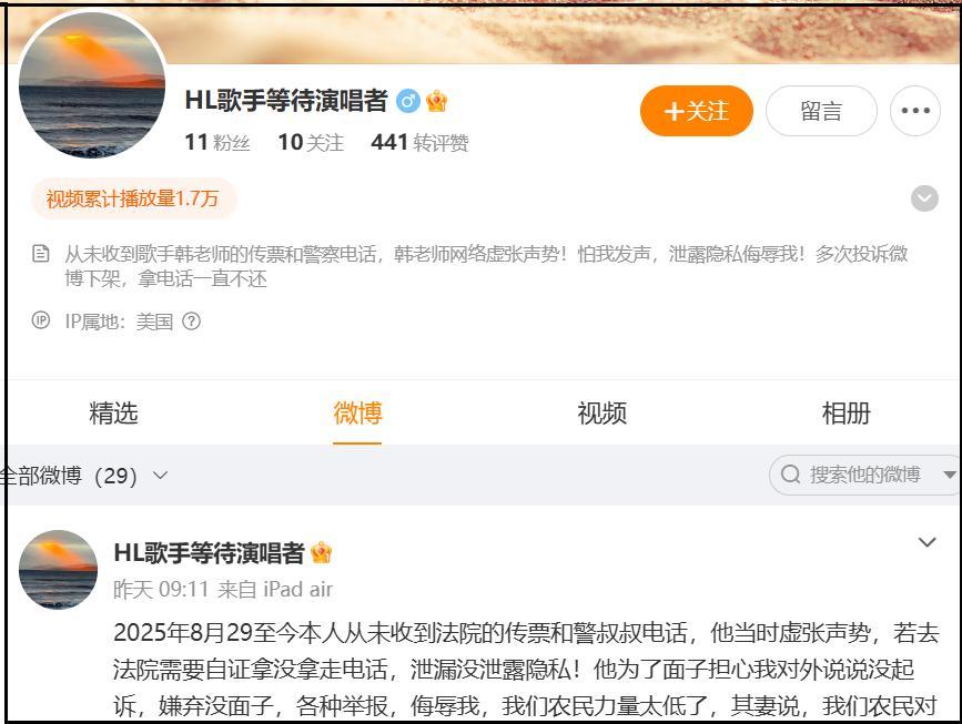 先简单复盘一下去年的风波始末,帮大家快速找回记忆。2025年8月,一位女网友突然发文爆料,直指歌手韩磊婚内出轨,还声称自己被对方害得怀孕,承诺的补偿也没兑现,甚至被拿走存有去世母亲遗物的手机。这番爆料配上所谓的聊天记录、私密视频,瞬间引爆舆论,韩磊的评论区彻底沦陷,“晚节不保”的质疑声铺天盖地。