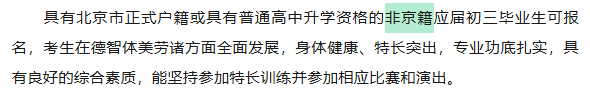 部分学校今年开始招收有升学资格的非京籍学生。例如潞河中学艺术特长生简章: